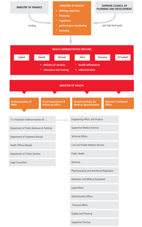'21년 기준 쿠웨이트는 민간 병원(15개)이 공공 병원(21개)보다 적은 편임